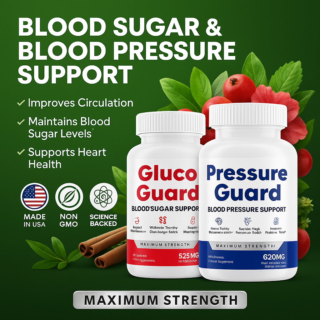 Gluco Guard Pressure Guard Combo Package - Advanced Blood Sugar and Blood Pressure Support